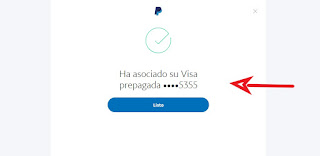 D. Por último, verifico que la tarjeta virtual Visa precargada de MACH se encuentre asociada de manera correcta a PayPal. (Ver la imagen).