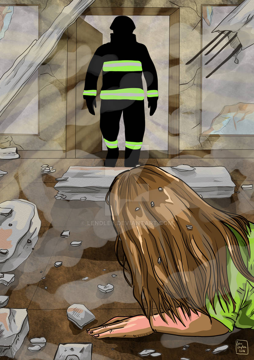 Entonces la poca luz que llegaba a mis ojos fue obstruida, al comienzo pensé que un trozo de mampostería que ya había bloqueado la salida, pero no, era la enorme figura de un bombero, más alto que los otros que habían entrado, también era más ancho, apenas lo distinguía entre las lágrimas de los ojos, solo podía distinguir las estridentes franjas color amarillo de su traje.